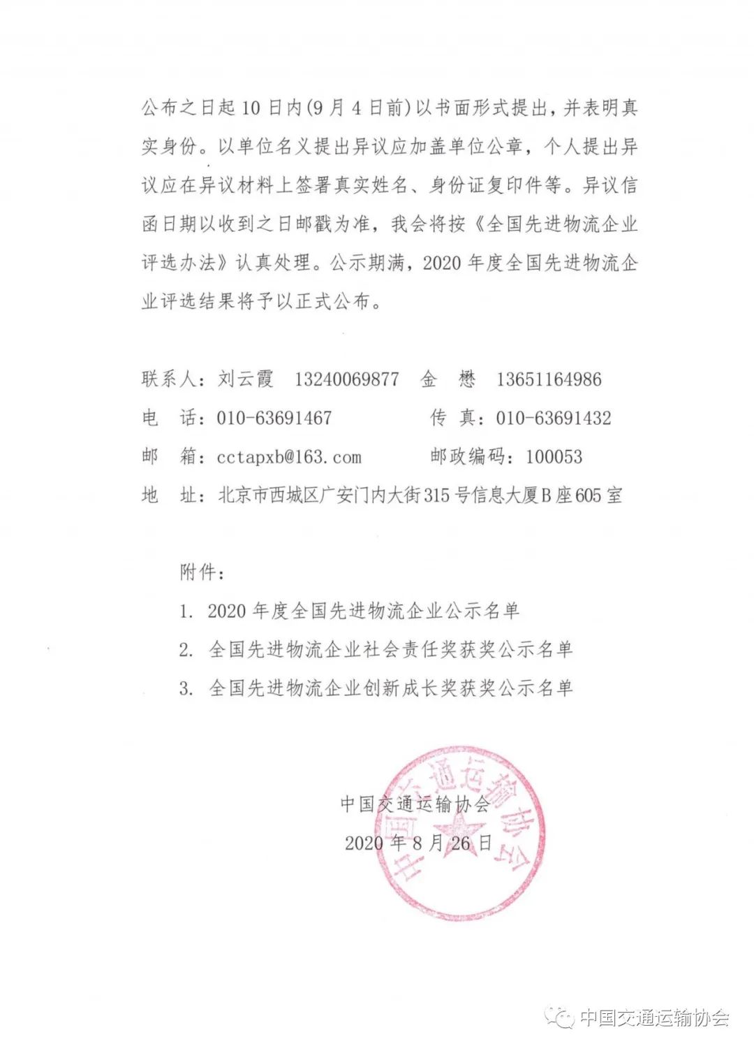 近日,由中國交通運輸協(xié)會主辦的全國先進物流企業(yè)活動評選結(jié)果公布,通過嚴格評選,臨沂天源國際物流有限公司被評為“2020年度全國先進物流企業(yè)”。