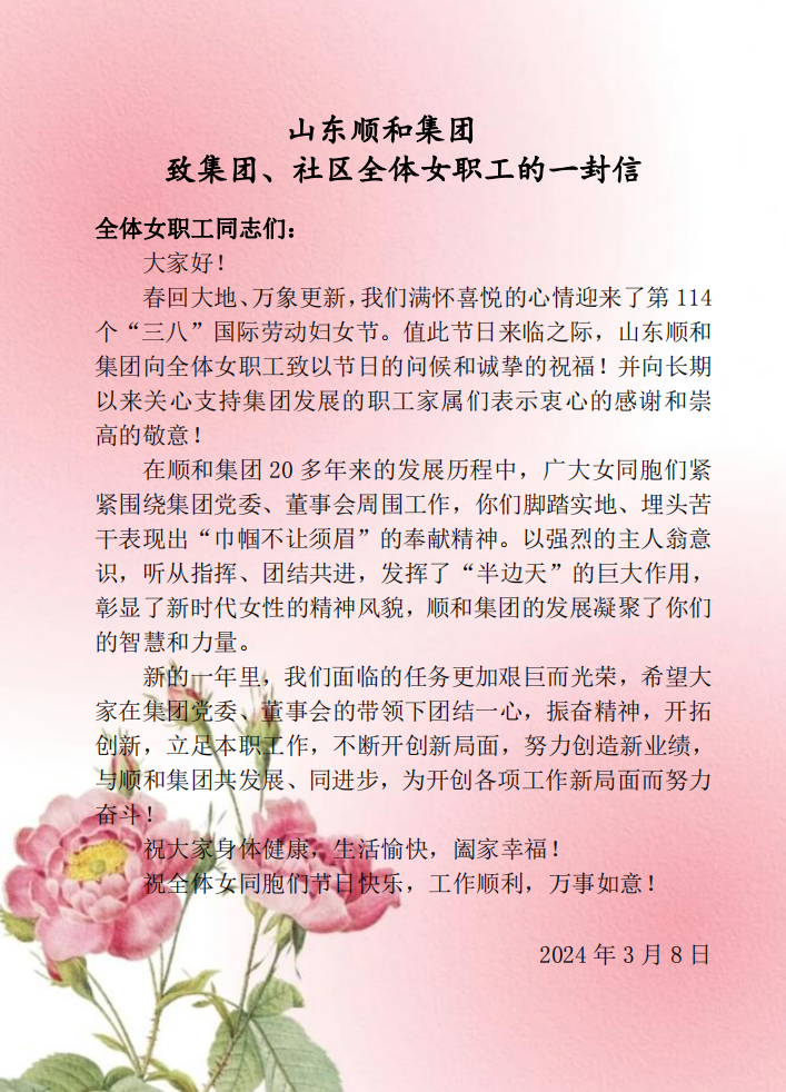 3月8日上午,在“三八”國際婦女節(jié)到來之際,順和集團(tuán)在9樓會議室召開《慶“三八”婦女節(jié)座談會》并為全體女職工送上節(jié)日禮物。集團(tuán)黨委書記趙玉璽,集團(tuán)黨委副書記、董事長許大勇出席會議,會議由集團(tuán)黨委委員、工會主席、婦聯(lián)主席蘇效芹主持,集團(tuán)女職工代表參加會議。