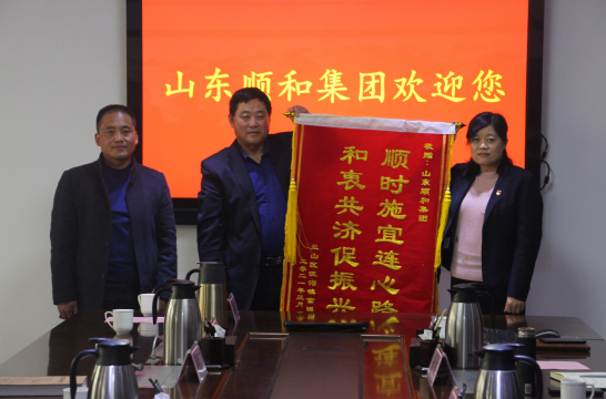 為感謝順和集團向蘭山區(qū)汪溝鎮(zhèn)富強村捐款30萬元用于修建道路,3月11日上午,蘭山區(qū)商務(wù)局局長溫秀,蘭山區(qū)汪溝鎮(zhèn)人民政府鎮(zhèn)長姜修偉,蘭山區(qū)汪溝鎮(zhèn)黨委副書記李明及商務(wù)局駐村第一書記,富強村代表等特意到山東順和集團贈送錦旗。集團黨委書記、董事長趙玉璽,黨委委員、副總經(jīng)理張磊,黨委委員、工會主席蘇效芹,集團董事、順和物聯(lián)副總裁李邦等接待來訪。