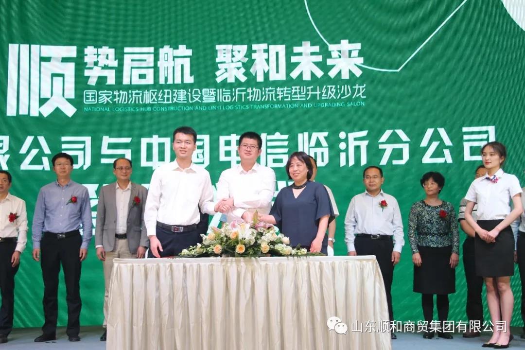隨后,山東順和國際物流有限公司分別與臨商銀行、民生銀行臨沂分行、中國電信臨沂分公司、天翼智聯(lián)、中國移動臨沂分公司簽訂戰(zhàn)略合作協(xié)議。山東順和物聯(lián)科技有限公司與臨沂市勞保商會、中大運(yùn)和國際物流有限公司簽訂合作協(xié)議。