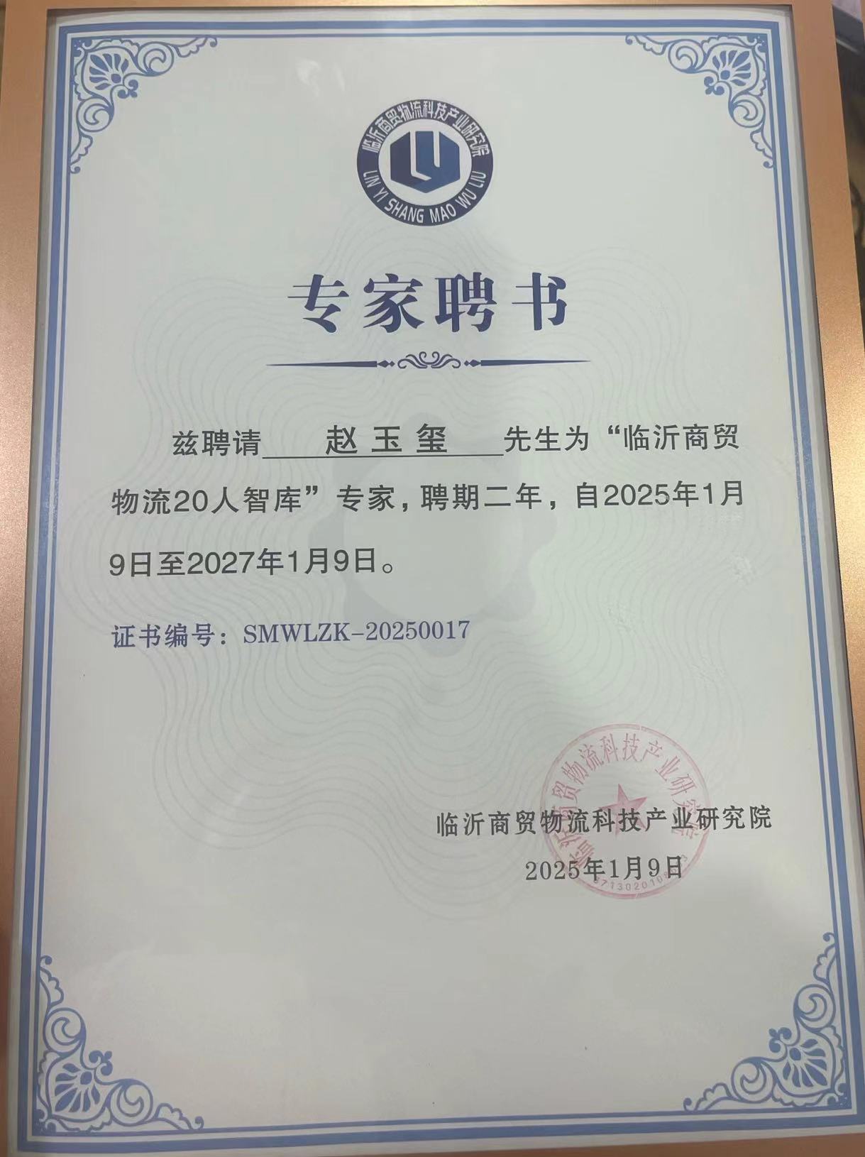 會上,集團黨委書記趙玉璽、商貿(mào)物流研究院順和分院院長曹松榮被聘請為“臨沂商貿(mào)物流20人智庫”專家,聘期二年。