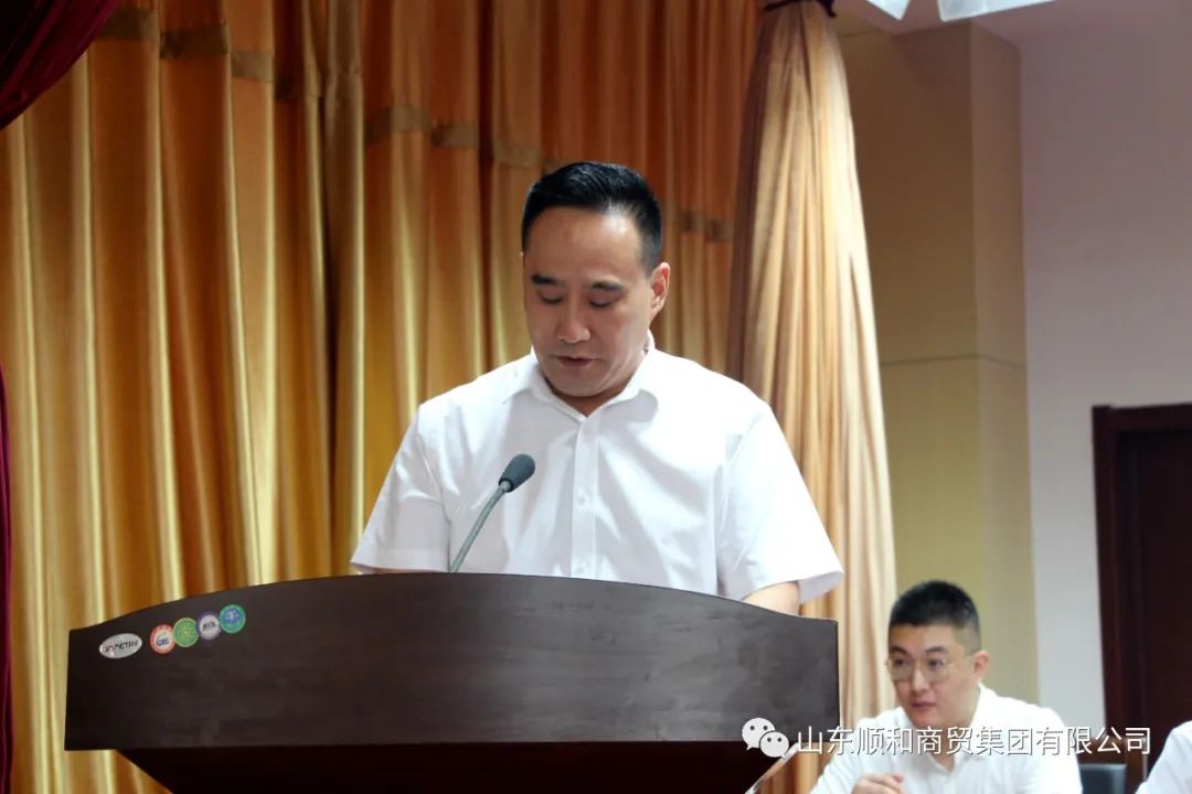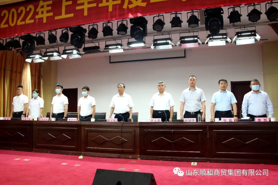 大會在莊嚴(yán)的國歌聲中正式開始。會上,集團(tuán)黨委副書記、總經(jīng)理趙國偉傳達(dá)上級文件:《臨沂商城轉(zhuǎn)型升級實施方案(2022—2026年)節(jié)選》。順和國際、順和物聯(lián)、臨沂電動自行車市場、集團(tuán)企業(yè)管理辦公室、供應(yīng)鏈金融部、安全管理辦公室、商貿(mào)物流研究院的主要負(fù)責(zé)人依次就上半年重點工作完成情況和下半年主要工作計劃進(jìn)行表態(tài)發(fā)言。