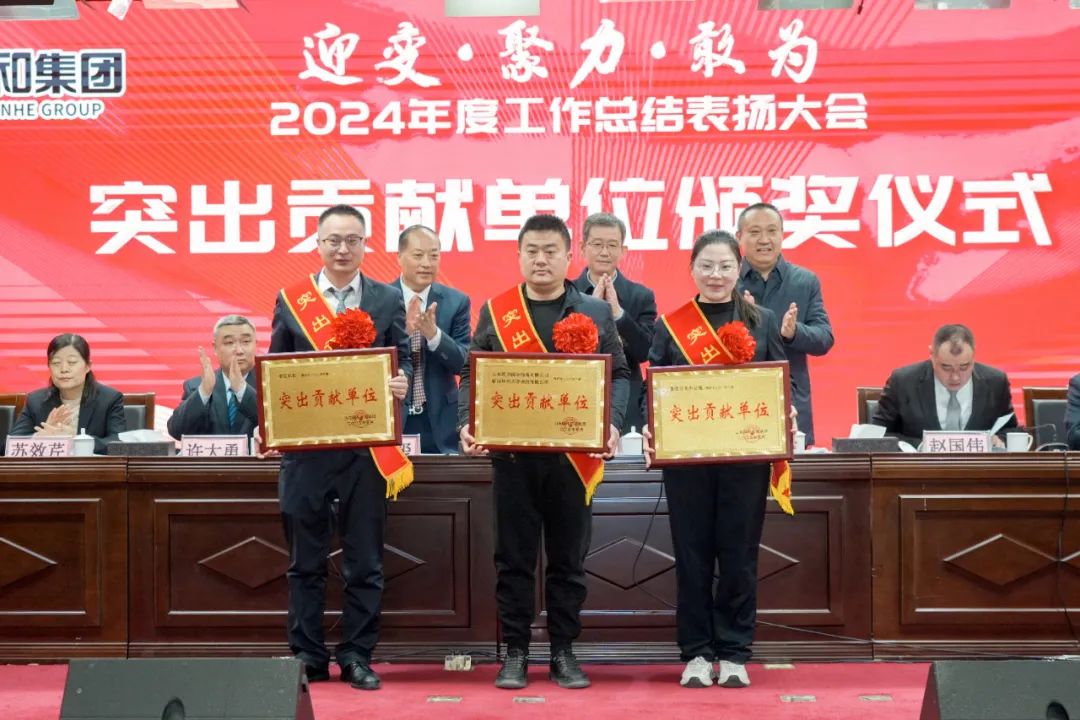 會(huì)上,集團(tuán)黨委副書記許大勇宣讀了《山東順和集團(tuán)2025年總體工作思路》,集團(tuán)黨委副書記、社區(qū)黨總支書記李慶武宣讀了《山東順和集團(tuán)關(guān)于表揚(yáng)2024年度“杰出工作者、突出貢獻(xiàn)單位、先進(jìn)工作者、誠(chéng)信經(jīng)營(yíng)業(yè)戶”等榮譽(yù)的決定》,主席臺(tái)領(lǐng)導(dǎo)向獲獎(jiǎng)單位和個(gè)人進(jìn)行頒獎(jiǎng)。